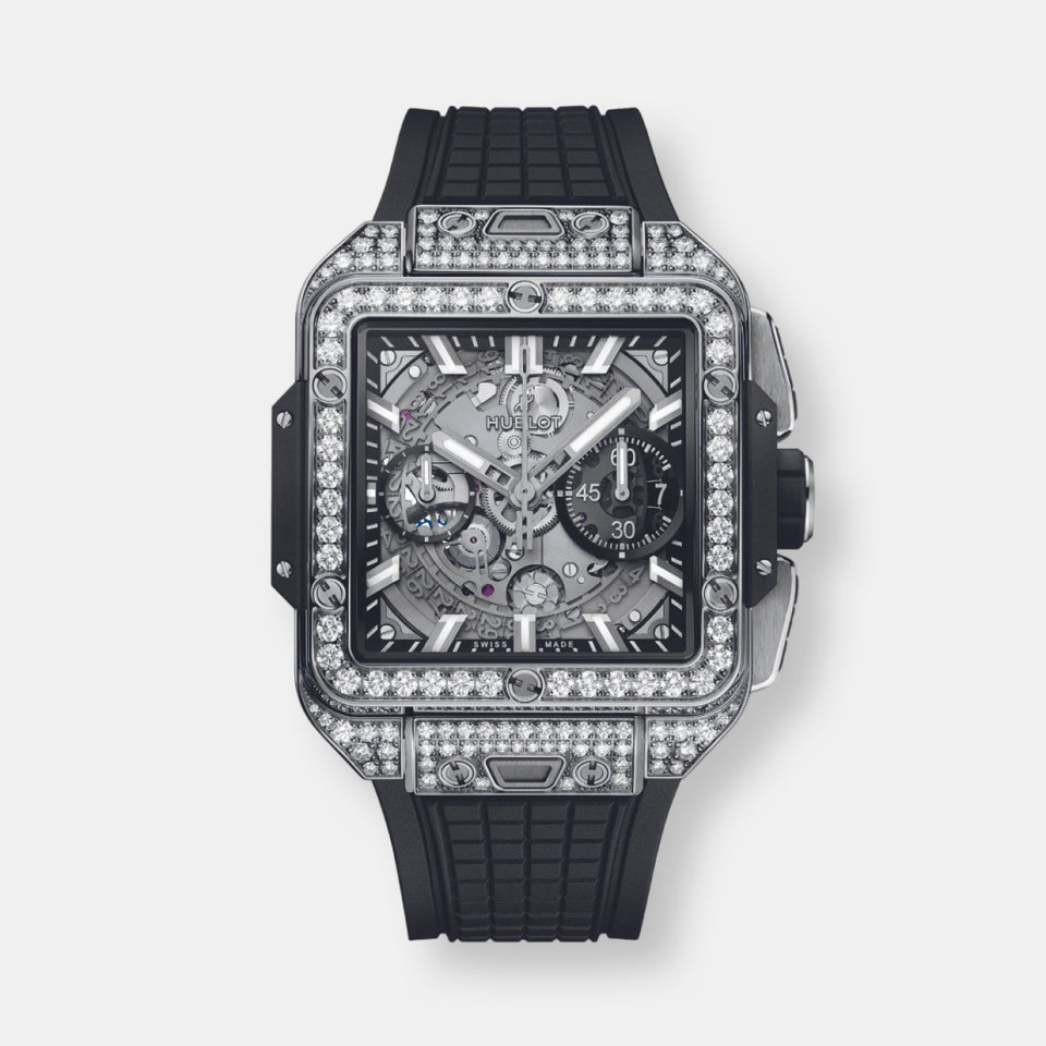 Montre square bang unico titanium pavé